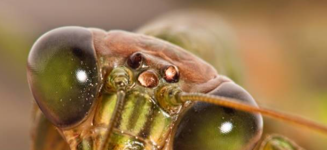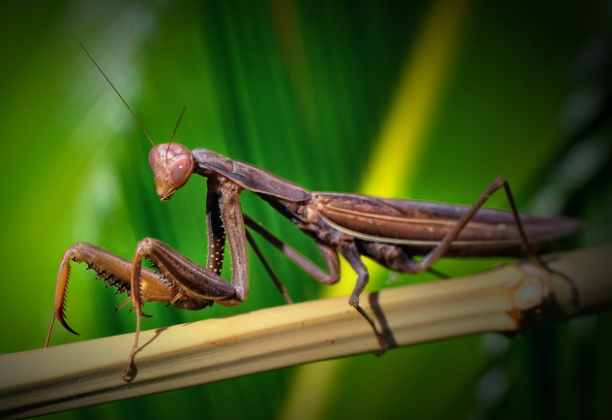 An interesting feature of Praying Mantises is that they don't have lungs because their body is full of pores that absorb oxygen directly, completely skipping the breathing step! Another interesting fact about these insects is that they only have one ear! In the past, scientists thought that praying mantises were deaf because they couldn’t find typical ear structures on a mantis’ body. One of their most notable features is their two main compound eyes, which are much larger than a regular insect’s eyes.